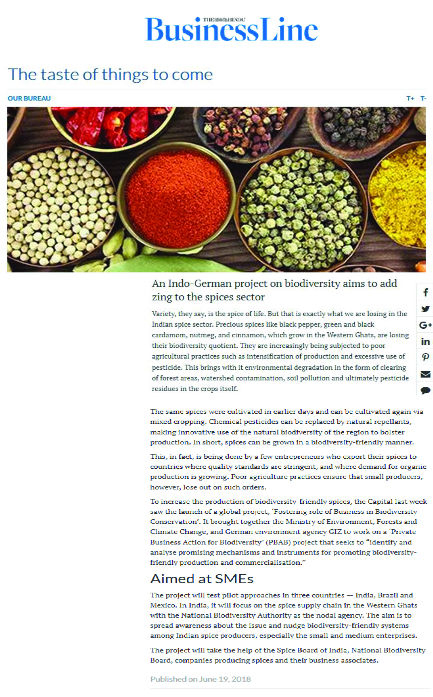 Hindu Business Line: An Indo-German project on biodiversity aims to add zing to the spices sector