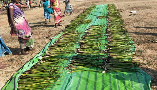 Cut stems are sorted and sun-dried by women’s groups, turning an invasive plant into natural-fibre raw material. | © GIZ / Utkarsh lalhotos: GIZ India/ Utkarsh Lal