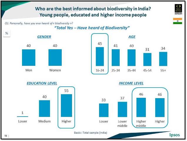 Ms Oliva, who presented the results of the 2015 Biodiversity Barometer on 26th February in Bengaluru, further explained that "India ranked particularly well in the number of consumers saying they find it personally important to contribute to biodiversity conservation, which shows a clear opportunity for business in leading efforts on these topics."