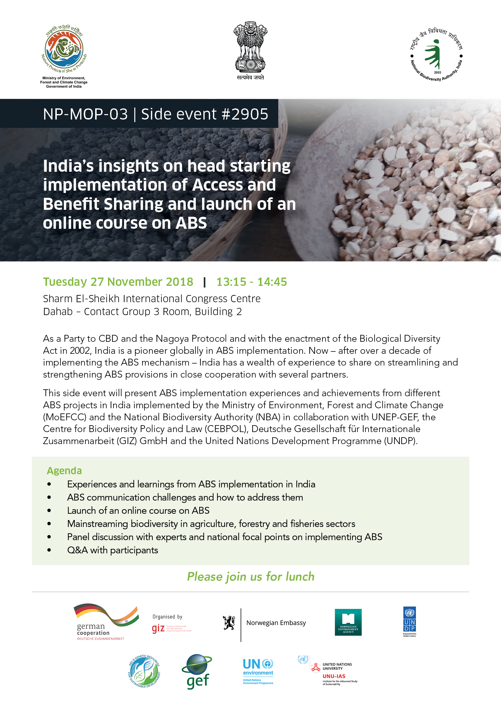 India’s insights on head starting implementation of Access and Benefit Sharing and launch of an online course on ABS