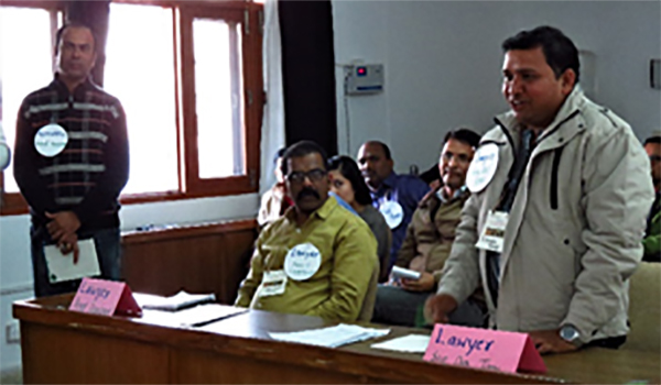 A Role Play on – ‘Courtroom scene on legal proceedings of a fictitious case related to Human Wildlife Conflict’ was enacted, which helped participants experience the entire process and understand the nuances of a crime scene investigation, its technicalities and the process of documentation of such cases. The courtroom scene was followed by a Knowledge Café where the experts Dr. P C Tyagi (Senior Professional Fellow), Sh. Surendra Mehra (CCF WL, Uttarakhand) and Sh. Ajay Srivastava (Scientist-G) facilitated the participants in gaining further clarity on 3 questions: