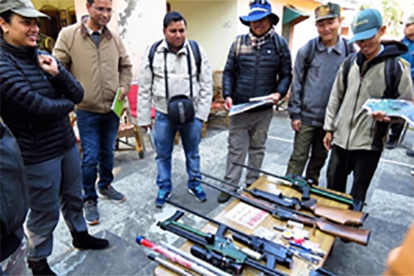 The implementation of this sub-module also served as a pilot testing of the newly developed curriculum on “Human Wildlife Conflict Mitigation”, which was developed in the 4 consecutive curriculum development workshops. This newly introduced sub-module “Human Wildlife Conflict Mitigation” is based on competencies-based approach of curriculum development. The sub-module on HWC mitigation was delivered using participatory training methods, such as role-plays, quizzes, simulations, case studies, field expeditions, thematic champions, knowledge cafés, demonstrations and hands-on exercises. The field expedition also included simulation of tracking a collared wild animal and its capture process.