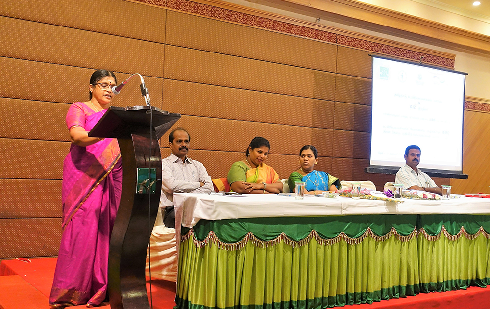 Ms. Sugantha Priscilla, GIZ, speaking at the Workshop at Madurai
