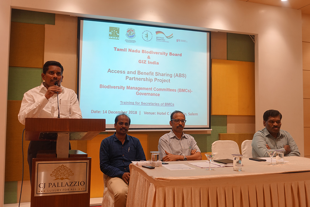 The Access and Benefit Sharing (ABS) Partnership Project, along with the Tamil Nadu Biodiversity Board (TNBB), conducted trainings for secretaries of Biodiversity Management Committees (BMCs) in two districts, Salem (14 December 2018) and Madurai (18 December 2018).