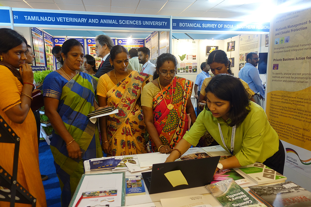 A thematic exhibition was also inaugurated by the Hon’be Vice President, which saw the participation of over 32 different institutions. The exhibition showcased their achievements and work in the field of biodiversity conservation. GIZ had also set up a stall for the event, providing information related to various projects of the Indo-German Biodiversity Programme.