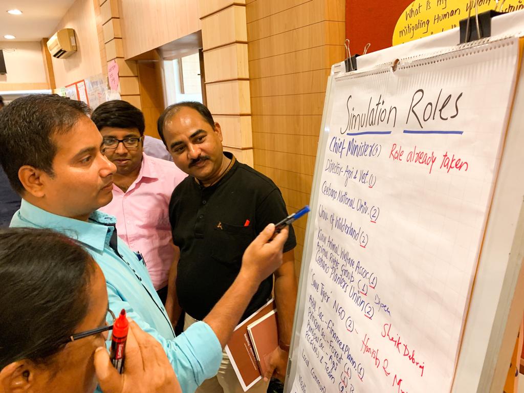 The next session was a simulation exercise based on a fictitious State called Ceebano where an HWC mitigation Strategy needed to be adopted by the State with the consensus of all departments and stakeholders (in a meeting called by the Chief Minister). The deliberations in the simulation focused on cross-sector cooperation where the participants had the opportunity to reflect and analyse the key elements, perceptions and thought processes that govern the interaction between people performing their respective roles in different departments and agencies.