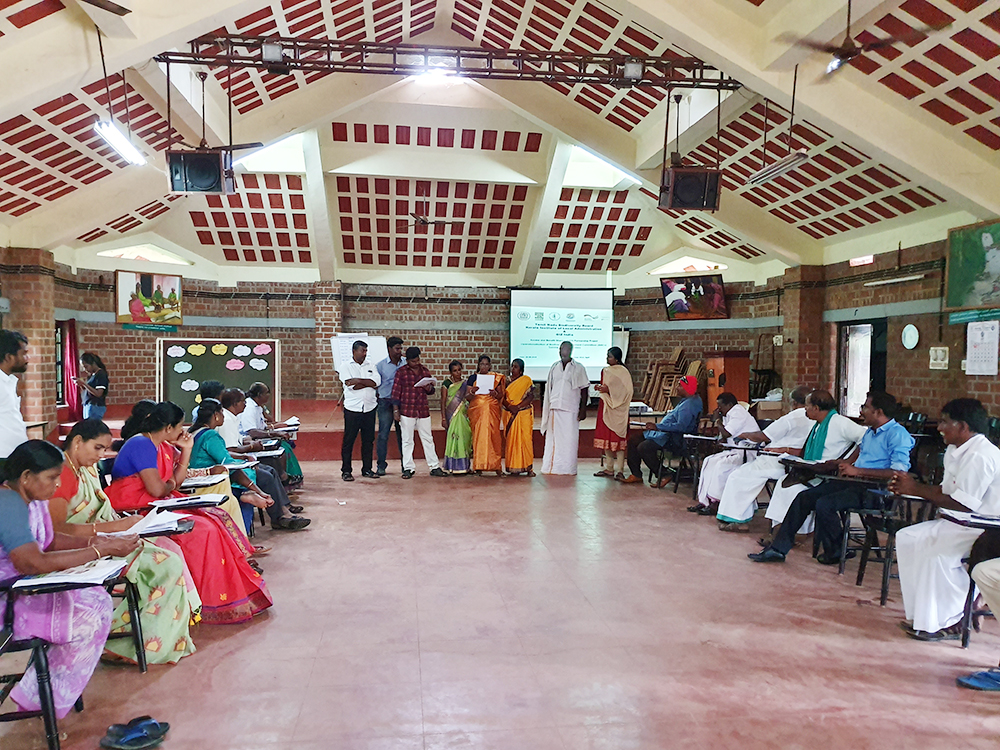 Members of pilot BMCs under the ABS Partnership Project participated in the training. The project has strategically selected 10 block-level BMCs across 8 districts in Tamil Nadu to develop ABS good practices. Twenty-four members of various BMCs in Radhapuram block (Tirunelveli district), Natham and Shannarpatti blocks (Dindigul district), Kariapatti (Virudhunagar district), Melur and Sedapatti (Madurai district), Thiruppuvanam (Sivagangai district) and Thiruvattaru (Kanyakumari district) participated in the training.