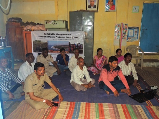 A discussion, aimed at increasing awareness amongst village members about the importance of the biodiversity in Velas, as well as their role in conserving this rich ecosystem, was also organised at the Gram Panchayat office by the Project Associates of the CMPA Project and Range Forest Officer, Dapoli. Mr. Mohan Upadhye, Project Associates of the CMPA project, presented information about biodiversity, its importance and the need for conservation. While, Mr. Mohite, Forester and Mr. Bhagvat, Forest Guard conducted discussions with village members, providing insights into the issue of pollution and solid waste on the beach, which is a threat to the turtle nesting site and biodiversity of the village.