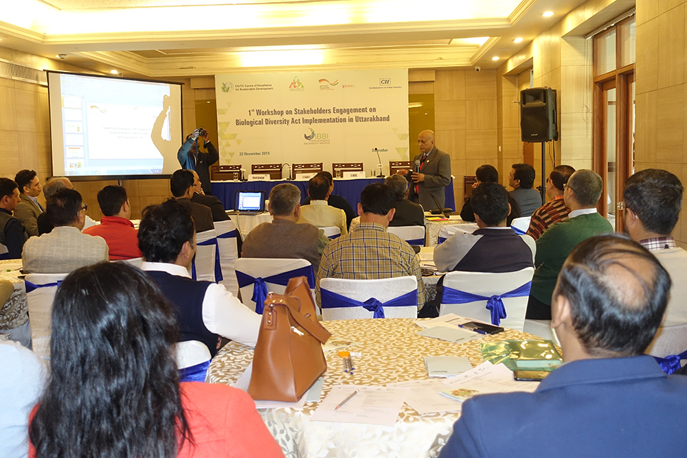 The workshop on “Stakeholder Engagement on Biological Diversity Act Implementation at Uttarakhand”, the first of its kind in Uttarakhand, was opened by the Confederation of Indian Industries (CII). The panel discussions were led by Mr. SS Rasaily, Member Secretary, Uttarakhand Biodiversity Board; Dr. S Farooq, Past Chairman, CII Uttarakhand State Council and President, Himalaya Drug Company, Dehradun; Mr. Anil Joshi and Dr. Pradeep Mehta, Technical Expert, GIZ India and CII representative- Dr Pravir Deshmukh, Counsellor, CII.