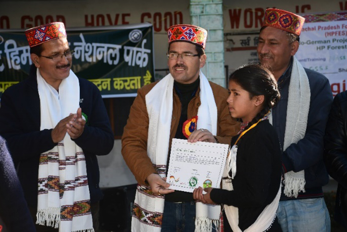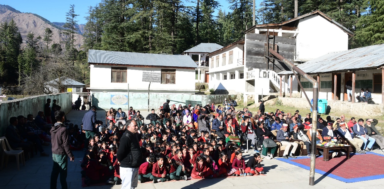 Himachal Pradesh Forest Ecosystem Services (HP-FES) Project, which is jointly implemented by the Himachal Pradesh Forest Department (HPFD) and GIZ, convened a mass awareness campaign for two eco-sensitive tourism project sites namely Shangarh (Great Himalayan National Park Division) and Hamta (Kullu Forest Division) of District Kullu in Himachal Pradesh from 6-7 December 2019. The objective of the campaign was to generate awareness amongst the local communities about the project activities and sensitise the youth of the villages on their role and responsibilities for sustainable management of forest ecosystem services. The participants comprised of 350 children and young adults from Shangarh, and 153 from Hamta. Mr. Surender Shourie (Member of Legislative Assembly, Banjar Constituency) and Mr. Chander Kiran (District council Manali) were invited as chief guests at the event at Hamta. Senior forest officials along with Mr. Ajit Thakur (Conservator of Forest) and Mr. Sachin (Divisional Forest Officer) at Shangarh and local forest officials at Hamta facilitated the event.
