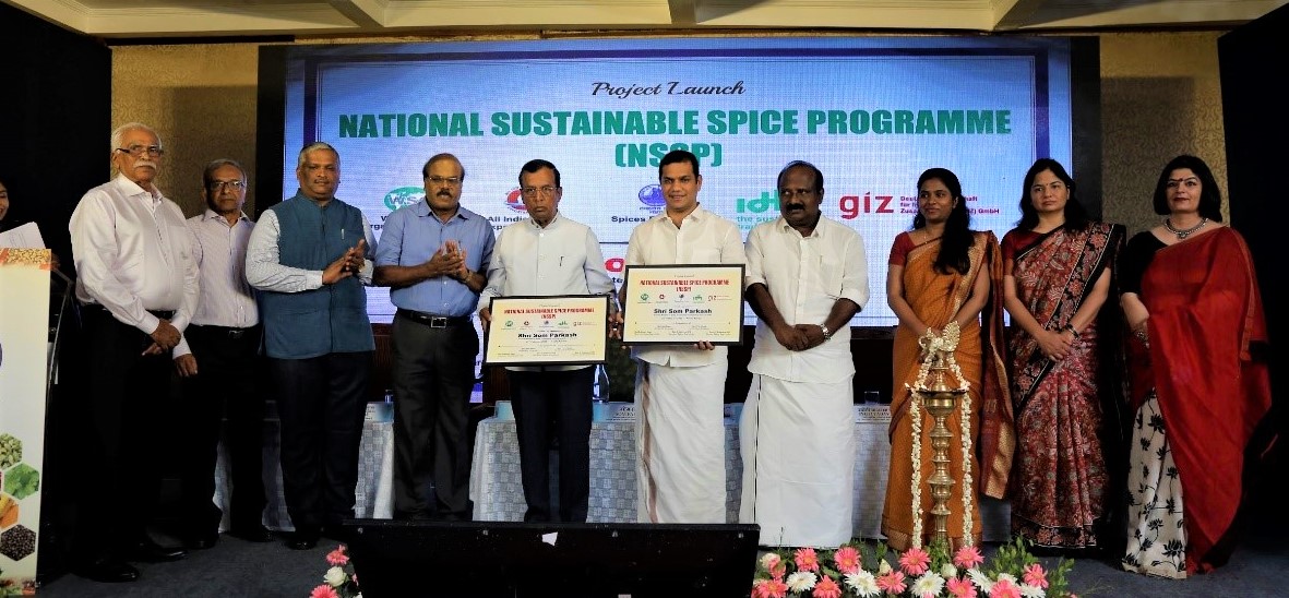 National Sustainable Spice Programme (NSSP) was launched by Honorable State Minister of Commerce and Industry, Mr Som Prakash on 22nd February 2020 in Kochi. NSSP initiative has been jointly undertaken by Spices Board of India, GIZ-Private Business Action for Biodiversity, World Spices Organization and IDH (The Sustainable Trade Initiative). The primary objective of the initiative is to focus on sustainability, biodiversity and food safety issues in the major spice growing areas in the country.