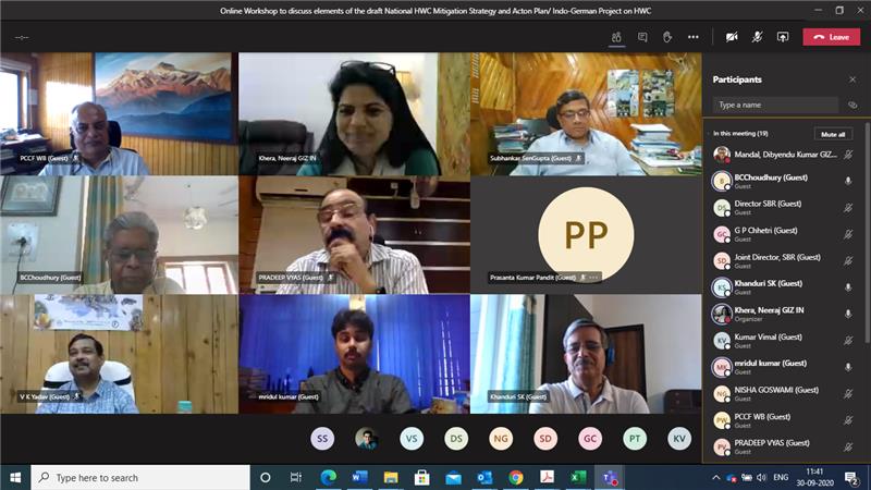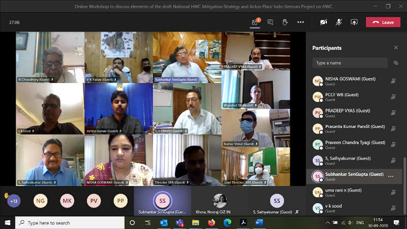 The Indo-German Project “Human Wildlife Conflict Mitigation (HWC)” in India organised an online consultation workshop on the sub-zero draft of the National Human-Wildlife Conflict Mitigation Strategy and Action Plan (HWC-NAP) to receive inputs from project partner state West Bengal on 30 September 2020. The online discussion focussed on key elements of the sub-zero draft with officers and experts from West Bengal.
