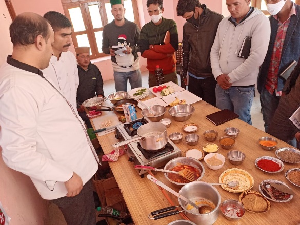 Trainers from the Institute of Hotel Management, Kufri, were invited to highlight the importance of hospitality and tourism management, homestays amenities and services, cuisine and kitchen management, tourism products marketing and linkages etc. Insights on local cuisines, beverage-making, their presentation and provision of quality food services at all the ecotourism units were provided.