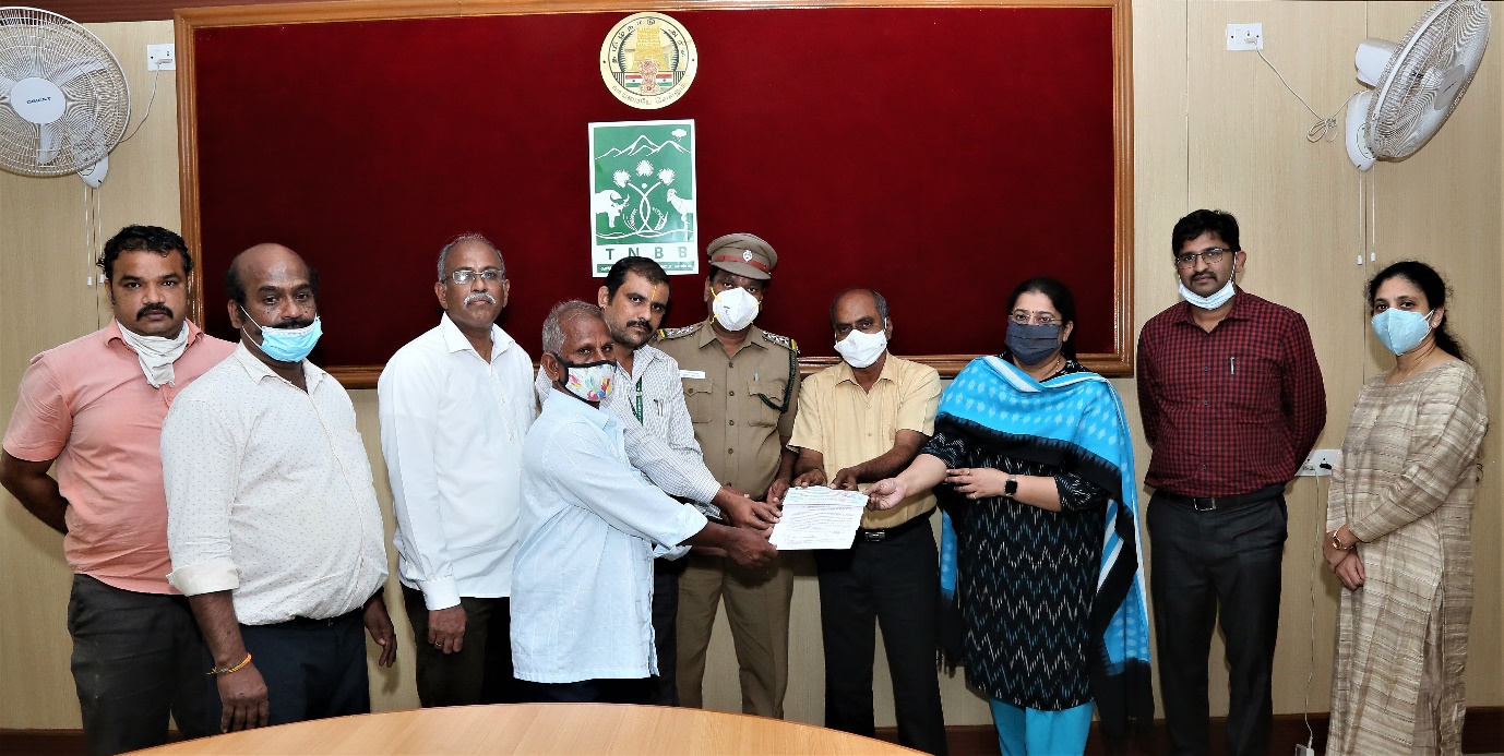 The Tamil Nadu Biodiversity Board (TNBB), Chennai held a meeting in Chennai on 17 November 2020 to hand over the benefit-sharing amount to the Thiruporur BMC and benefit claimers, i.e. Irula Snake Catcher’s Industrial Cooperative Society.