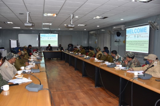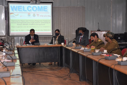 At the inaugural session, Dr S. Sathyakumar (Scientist - G, WII) welcomed all the participants and guests. Dr Pradeep Mehta (Technical Advisor, GIZ) briefed participants on the Indo-German technical cooperation project on HWC mitigation and the role of GIZ as an implementing agency. He elaborated on the three landscapes selected as the project pilot sites and the State Action Plan, Management Action Plan and Guidelines for 10 species/groups being prepared under the project. He also spoke about the Rajaji-Haridwar-Dehradun pilot site selected in Uttarakhand and early warning rapid response system, rapid response teams and hubs being set up in the state. Dr Dhananjai Mohan (Director, WII), in his inaugural address, noted that “several RRT training for frontline staff were conducted and planned in the landscape however, all training till now focused on key conflict species. However, this training covers a common problem faced by all frontline staff in the field. In most cases of HWC, we need to manage the species and the crowd and other related legal aspects”. He emphasised that for crowd control, coordination with the police department is crucial and here the state police has good experience in handling crowds during HWC cases. He encouraged the participants to share their challenges and experiences during the discussions.