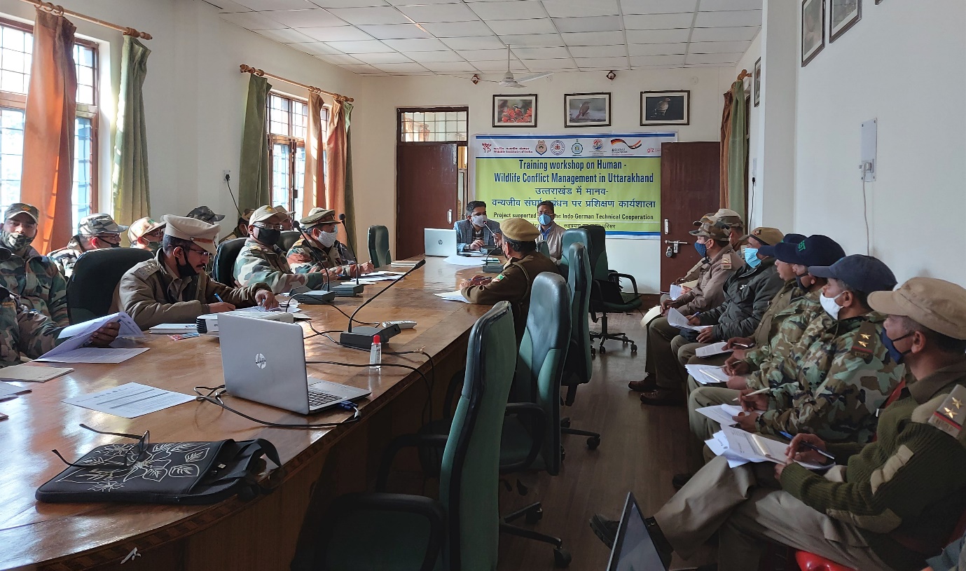A two-day training workshop was organised for the forest officials and frontline staff of the forest divisions in the mid-and high-elevation region of Uttarakhand from 17-18 February 2021 by Wildlife Institute of India and Rudraprayag Forest Division, Uttarakhand Forest under the Indo-German Human-Wildlife Conflict (HWC) mitigation in India project. The workshop on HWC management training on monitoring, tracking, capture and post-capture of Leopards and Bears in Uttarakhand was conducted as part of ‘Knowledge Support to Development of Guidelines, Specialized Field Studies, and Training on HWC mitigation in India’, under the project. 40 participants participated in the training.