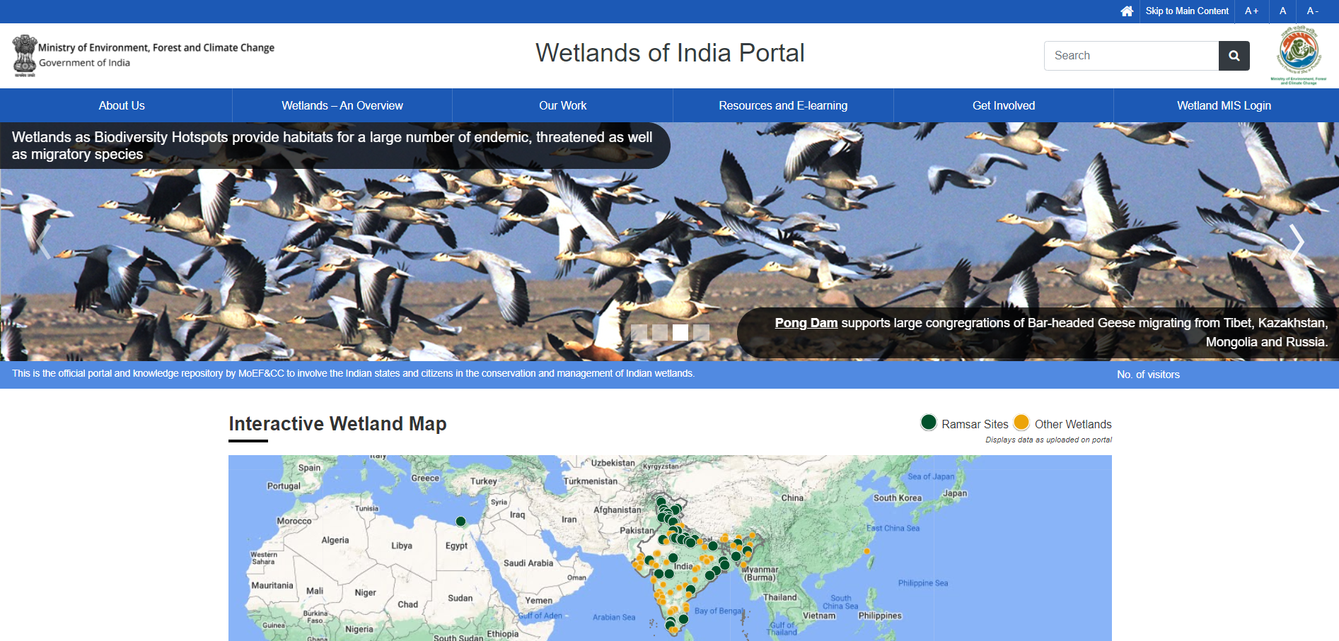The portal would help fulfil the statutory requirements of maintaining a centralised web portal and will provide a Management Information System (MIS) login for each and every state/UT wherein information pertaining to the wetlands in their administration needs to be uploaded. This information would be linked the public front of the portal and will be available for the public with varying access rights.