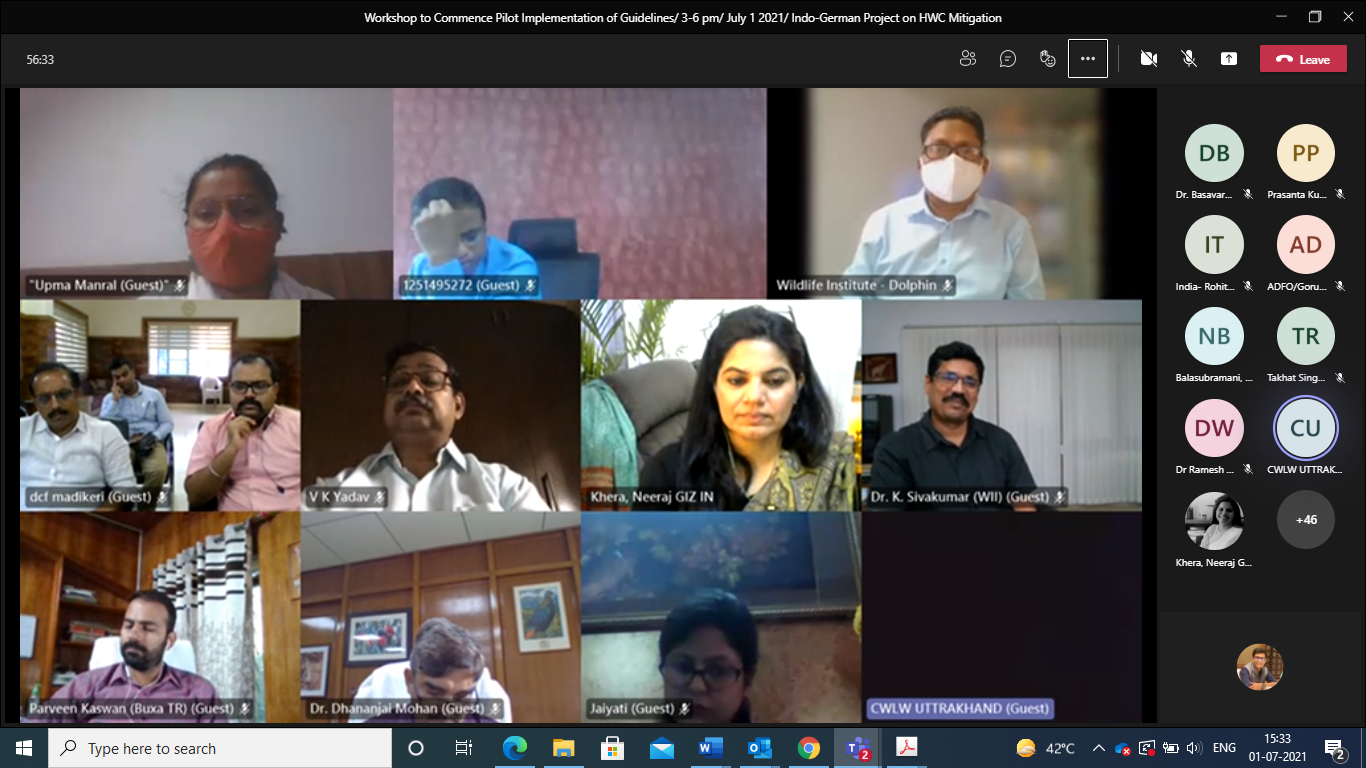 GIZ India, Ministry of Environment, Forest and Climate Change (MoEFCC) and State Forest Departments (SFD) of Karnataka, Uttarakhand and West Bengal organised an online workshop under the Indo-German project on “Human-Wildlife Conflict Mitigation (HWC)” in India on 1 July 2021. The workshop commenced the process of pilot implementation of species-specific guidelines on human-wildlife conflict mitigation in India.