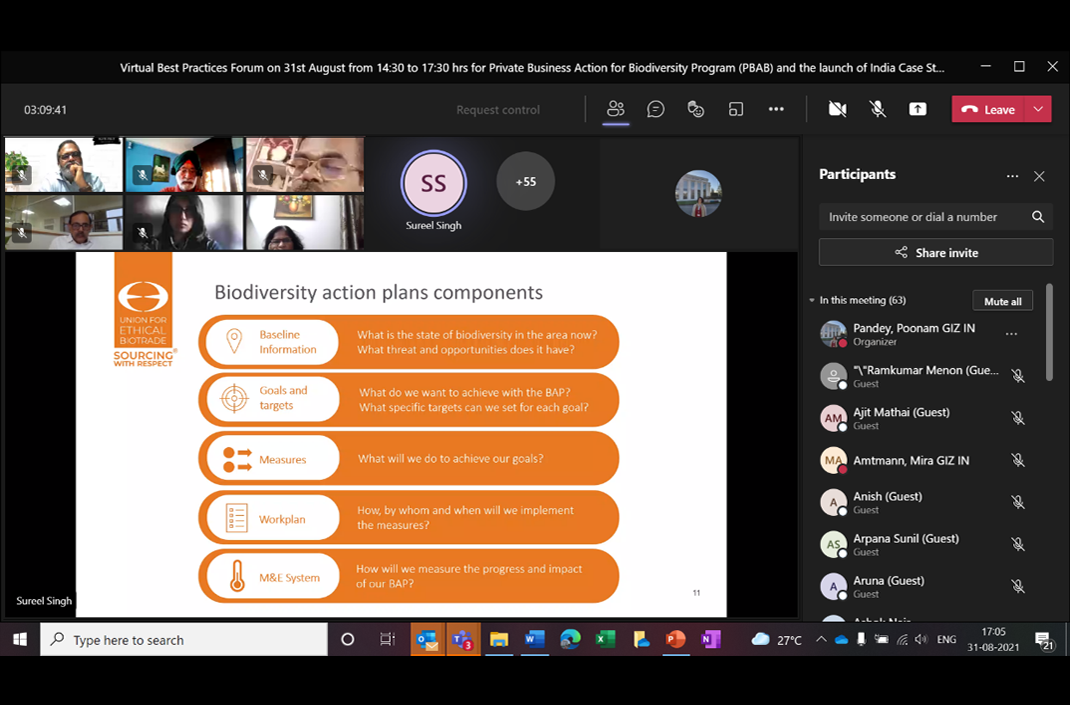 The global ‘Private Business Action for Biodiversity’ Programme (PBAB) organised a virtual Best Practices Forum on 31st August 2021. The event saw the launch of the India Case Study on Spices for ‘Effective Instruments for the Sustainable Protection of Biodiversity’.