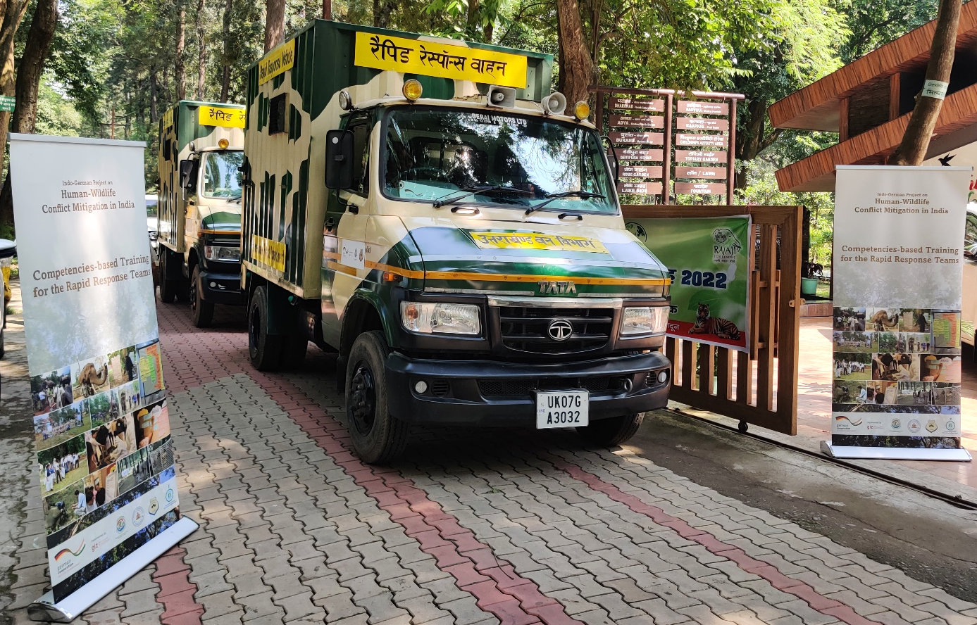 The Uttarakhand Forest Department has received these vehicles and associated trainings, as part of the demonstration pilot on the ‘Early Warning and Rapid Response System’ being implemented in the Rajaji-Haridwar landscape, under the Indo-German Cooperation project “Human Wildlife Conflict Mitigation (HWC)”. The Indo-German project is implemented by Deutsche Gesellschaft für Internationale Zusammenarbeit (GIZ) on behalf of the German Federal Ministry for Economic Cooperation and Development (BMZ) with the Indian Ministry of Environment, Forest and Climate Change (MoEF&CC), Government of India and the State Forest Departments of Karnataka, Uttarakhand and West Bengal.