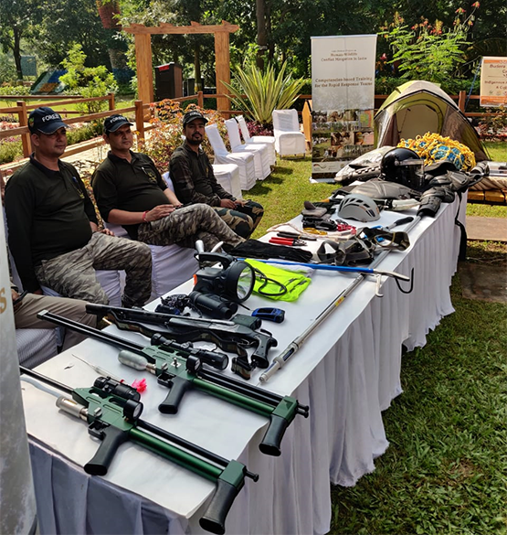 The vehicles have been fabricated to suit the field requirements of the rapid response teams, animal health safety aspects, and past experiences in the use of rescue vehicles in similar landscapes in India. Several other equipment for the Rapid Response Teams has already been provided under the Project and trainings are being provided to the personnel for effective use of this equipment, including radio collars for elephant and leopards, camera traps, specialised equipment kits for the rapid response teams for patrolling, rescue and driving operations, and a rapid response vehicle.