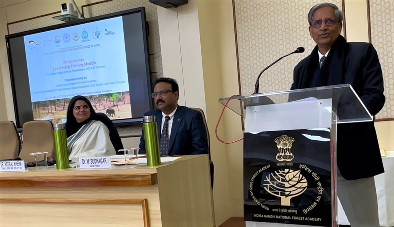 The Indo-German Development Cooperation Project on “Human-Wildlife Conflict Mitigation” in India aims at providing technical support at the national level, and in selected partner states for effective implementation of human-wildlife conflict mitigation measures. In this regard, Indira Gandhi National Forest Academy (IGNFA) and GIZ had entered into a Memorandum of Understanding for intensifying the training efforts on this issue.