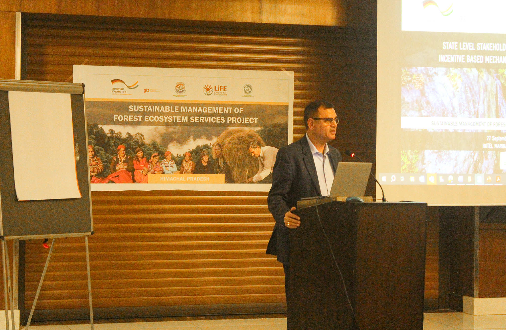 In alignment with these efforts, the Sustainable Management of Forest Ecosystem Services Project organised a state-level multi-stakeholder consultation on IbMs and the Himachal Pradesh Payment for Ecosystem Services (HP-PES) Policy in Shimla on 27 September 2023. The consultation specifically targeted stakeholders from various departments beyond Forests, including Planning, Tourism and Civil Aviation, Rural Development, Horticulture, Himalayan Forest Research Institute, and Irrigation and Public Health (IPH). The event was chaired by Mr. Rajiv Kumar, the Principal Chief Conservator of Forests (Head of Forest Force). In his opening remarks, the Chief Conservator of Forests welcomed the participants and provided a brief context on the objective of the consultation.