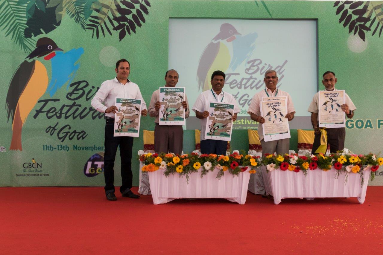 The festival was inaugurated at the Bondla Wildlife Sanctuary by Goa’s Hon. Minister of Forests and Environment Sh. Rajendra Arlekar in the presence of the local MLA Sh. Ganesh Gaunkar. During the inaugural function of the the Goa Bird Festival the Forest Minister, Sh. Arlekar released some key products developed by the CMPA Project in Goa. These included a new brochure for the Dr. Salim Ali Bird Sanctuary and two other posters viz. “Birds to Look out for at the Dr. Salim Ali Bird Sanctuary” and “Kingfishers of Chorao”. In addition, the project also designed and developed the merchandise for the festival which included t-shirts, caps and bags. The CMPA Project was lauded for its efforts and as being a highly successful project in the state of Goa.