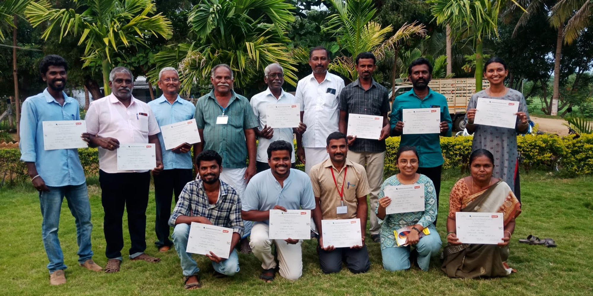 A group photo of lead farmers from develoPPP spices project in the training on biodynamic farming at Dharmapuri, Tamil Nadu © GIZ India/Pradnya Thombare