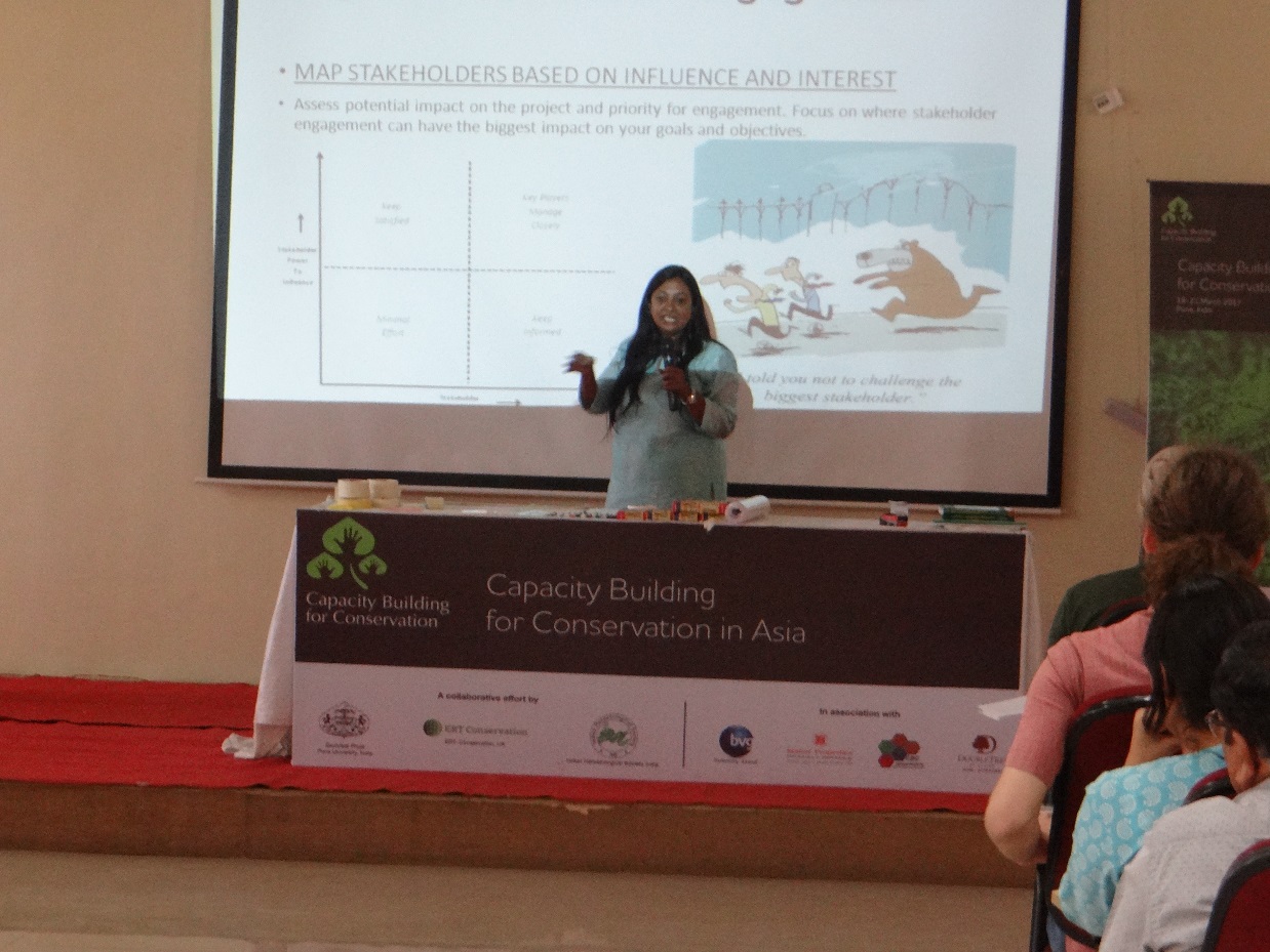 A workshop on “Improving conservation outcome through multi stakeholder engagement” was conducted by GIZ Advisers Supriya Jhunjhunwala & Dr. Aaron Lobo advisers, as part of the conference on Capacity Building for Conservation organised by ERT Conservation, the Indian Herpetological Society and Pune University, on the 21st of March 2017.