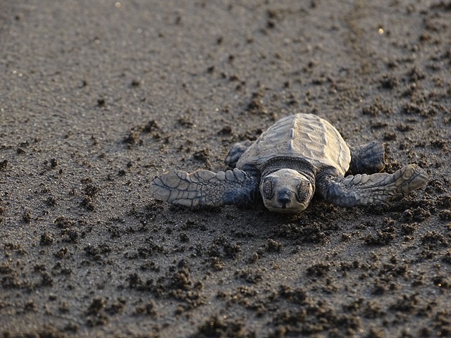 Olive Ridley hatchling returing to sea.