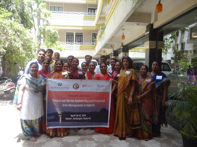 Trainings of Eco-club School Teachers on “Coastal and Marine Biodiversity and Protected Area Management in Gujarat” were organized jointly by GIZ and GEER Foundation under the Indo-German CMPA project, during 10-13 April, 2017 at Hotel Kalatit International, Jamnagar-Gujarat.