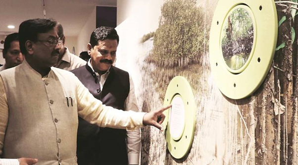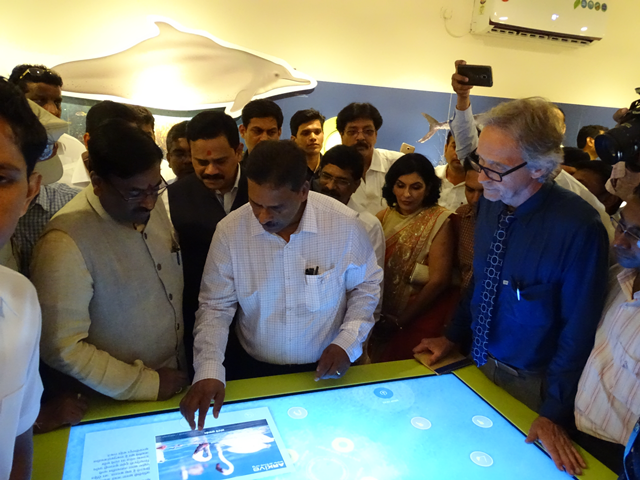 In his inauguration speech, the Hon’ble Minister, Finance & Planning, Forests, Govt. of Maharashtra, Shri. Mungantiwar, expressed his delight to have this fascinating interpretation centre in a location conveniently accessible to the people of Mumbai and its surroundings. He emphasized that the existence of mangroves and wetlands was crucial for protecting the coastal environment, and that every citizen had a role to play in the conservation of these important habitats. He also announced that the Government of Maharashtra will provide an additional 10 crores Rupees (1.4 Million EURO) for extensive landscaping around the centre, which will allow visitors to observe the operation of a mangrove nursery, inspect mangroves from a boardwalk, take a boat ride to watch flamingos or visit a whale museum.