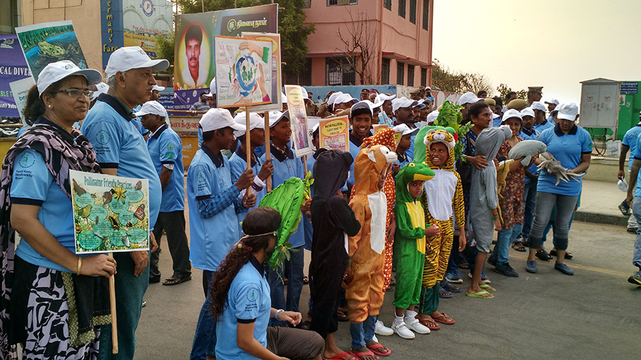 To create awareness among public, a biodiversity walk was organised at a prominent location in Chennai, Elliots Beach, Besant Nagar in the morning on 22nd May. Volunteers from Tree Foundation Chennai participated along with fishermen community of the region. There was a heartening response received from public, having about 160 people participated in the 3 km along the beach.